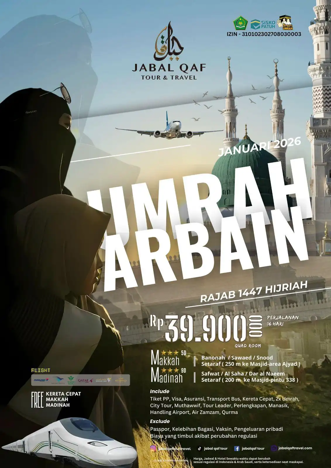 Menyediakan pelayanan terbaik bagi pelanggan, layanan berbeda dan unik dalam perjalanan spritual Anda, kami menjaga integritas dan komitmen dalam setiap tahap perjalanan ibadah Anda.